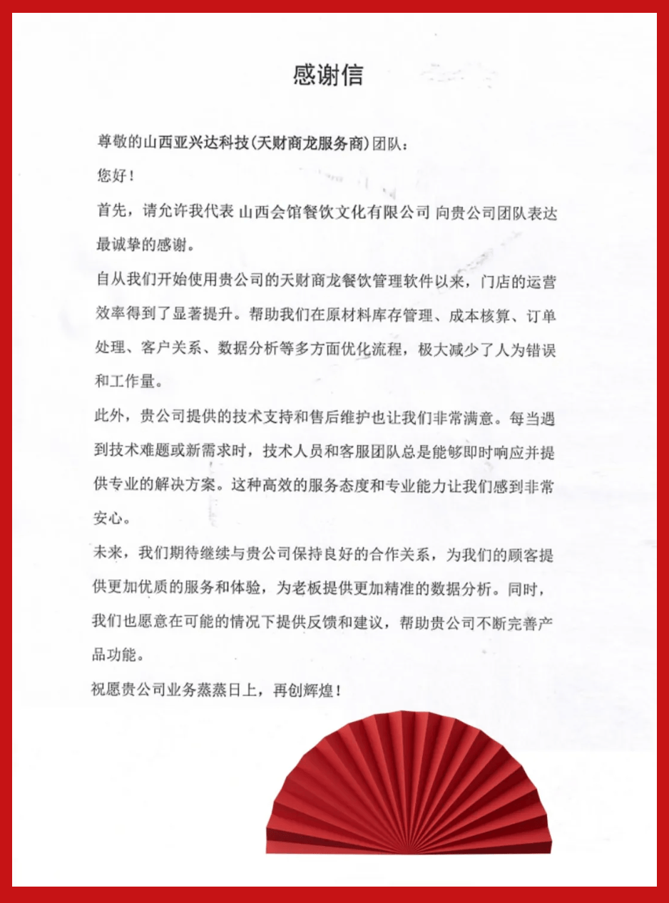 山西会馆选择取天财商龙合做,恰是基于天财商龙正在中高规矩餐连锁业态的深挚行业经验取专业办事能力。