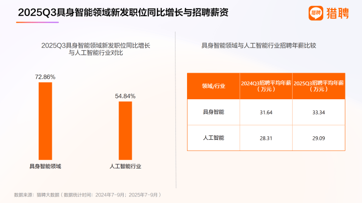 具身智能的竞技场上,一场环绕顶尖人才的抢夺和曾经打响,其激烈程度取薪酬数字,正不竭冲破人们的想象。最新的信号来自字节跳动。不久前,其旗下火山引擎出一则聘请消息:为招募具身智能标的目的的操做算法资深专家,开出了月薪9。5万元至12万元的高规格待遇。这个数字有点惊人,但深切领会后,这还不算最夸张的。听说,某明星具身智能公司的最新运控担任人,2024年刚研究生结业,现在对外开价曾经达到了年薪300万元——而这,尚未包含可能更可不雅的期权部门。“现正在只需有活动节制经验的候选人,只需他情愿,手握二、三十份offer都是悄悄松松的。达到担任人级此外,薪资接近万万元。”猎头Liam(假名)暗示。同时他指出,这场人才抢夺和早已延伸至校园。“特别是处置‘大脑’相关算法的顶尖人才,若来自清北复交、浙大、哈工大等出名尝试室的应届博士生,起薪往往正在60万以至70万元以上。”面临此情此景,一投资人伴侣感慨道:“AI让实正的天才价值表现出来了”。也有手艺从业者不由表达了对职业前景的现忧:“AI正正在急剧拉开人取人之间的差距,做手艺的,要么往更高精尖的范畴成长,要么可能就要等着被AI代替了。”跟着近期全国首个具身智能国度级尺度化试点落地上海,这一融合机械人、大模子取传感器手艺的范畴送来迸发式增加。本年三季度,具身智能范畴新发职位同比增加72。86%,高于人工智能行业的29。09万元,薪资更具合作力。